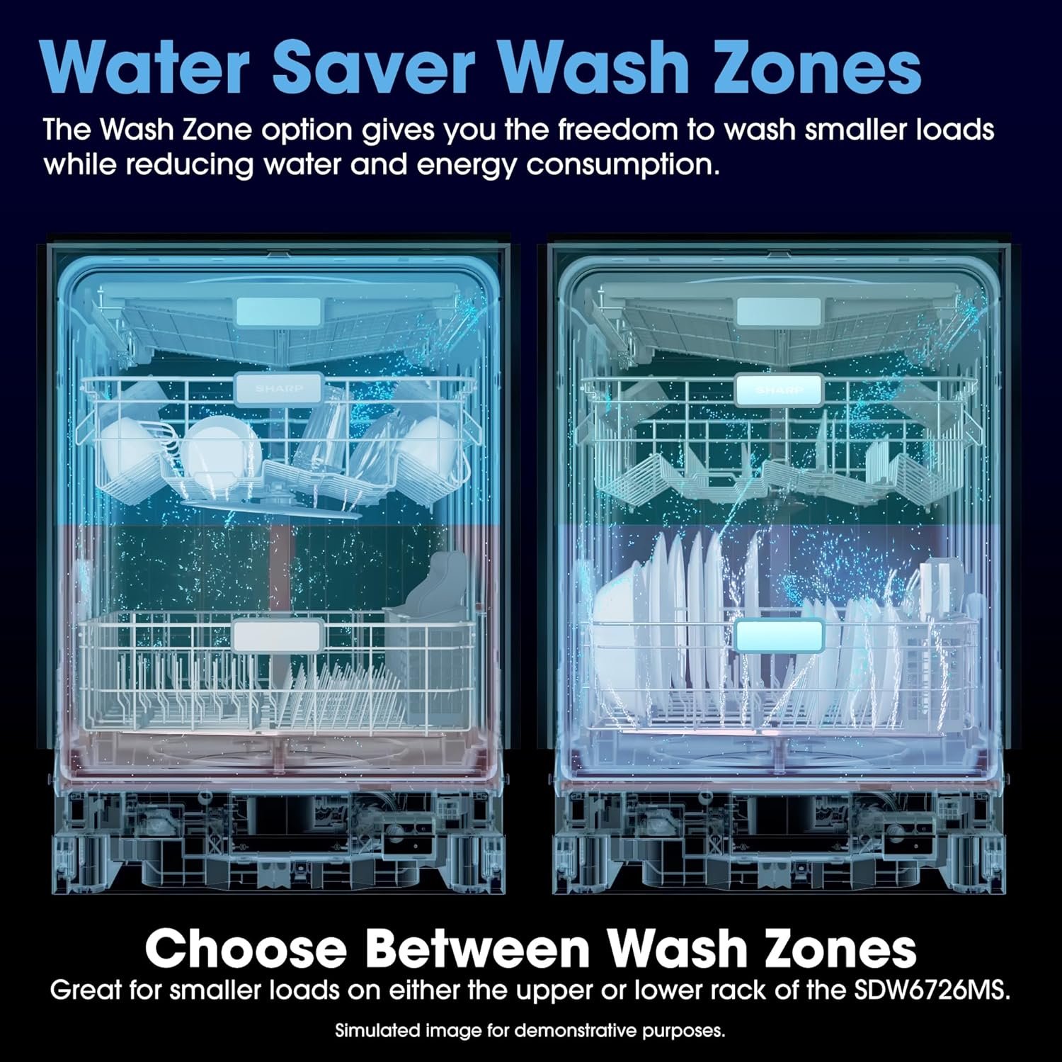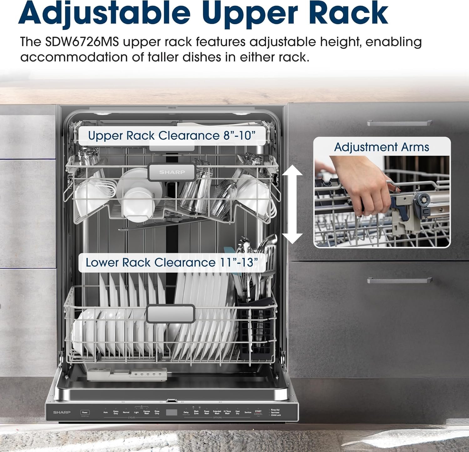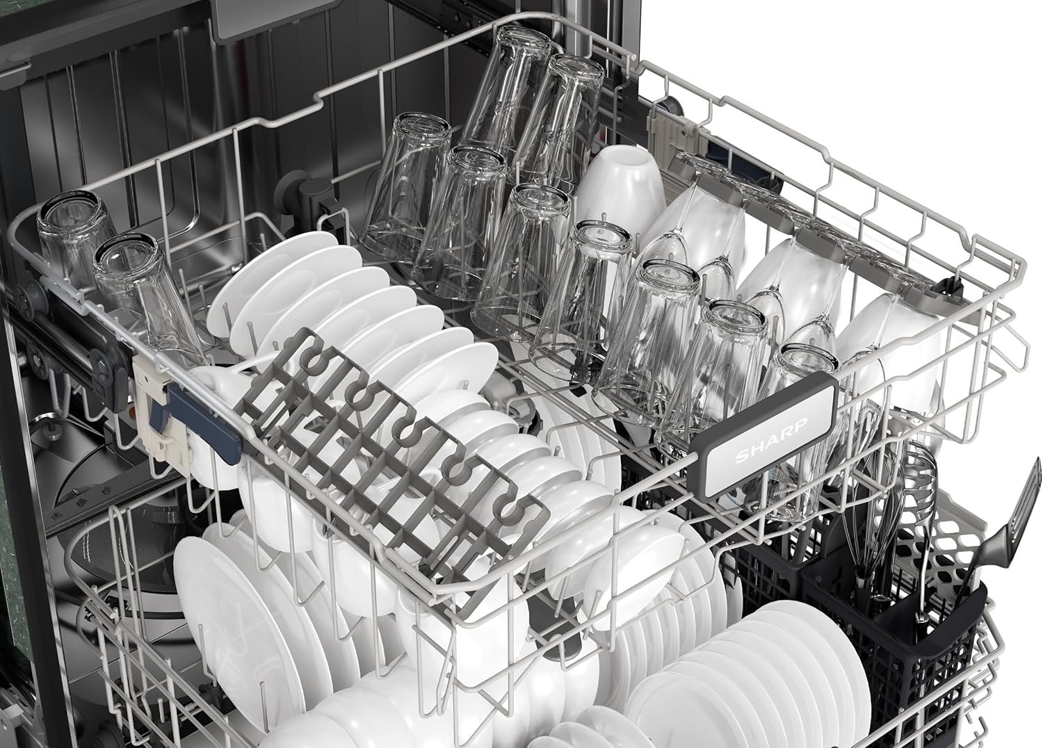 Sharp SDW6726MS 24-inch Stainless Steel Dishwasher, 47 dB Library Quiet, Third Rack, Power Wash Sprayer, 12 Place Settings,