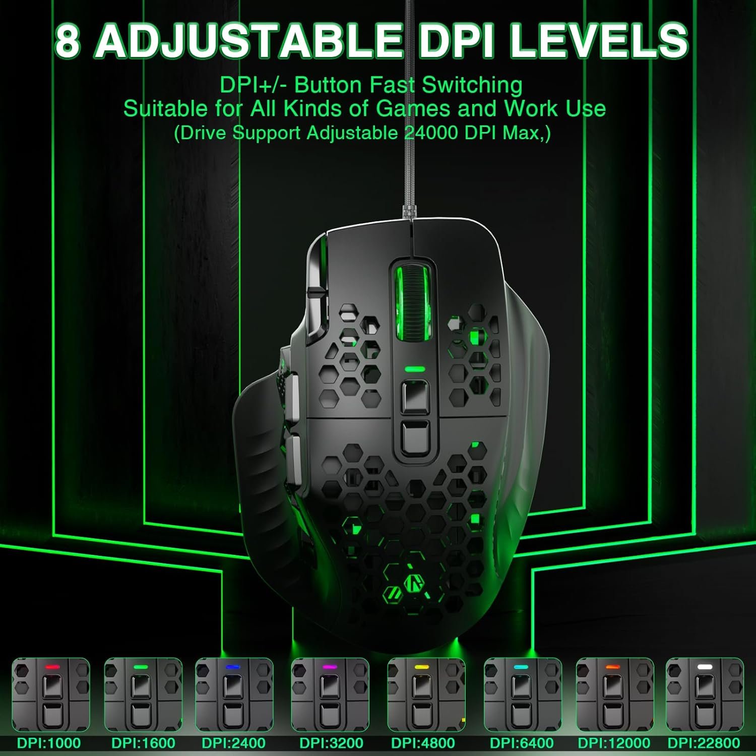 High-Precision Sensor: Equipped with a PAW3311 sensor, this gaming mouse offers up to 24000 DPI for fast, accurate control