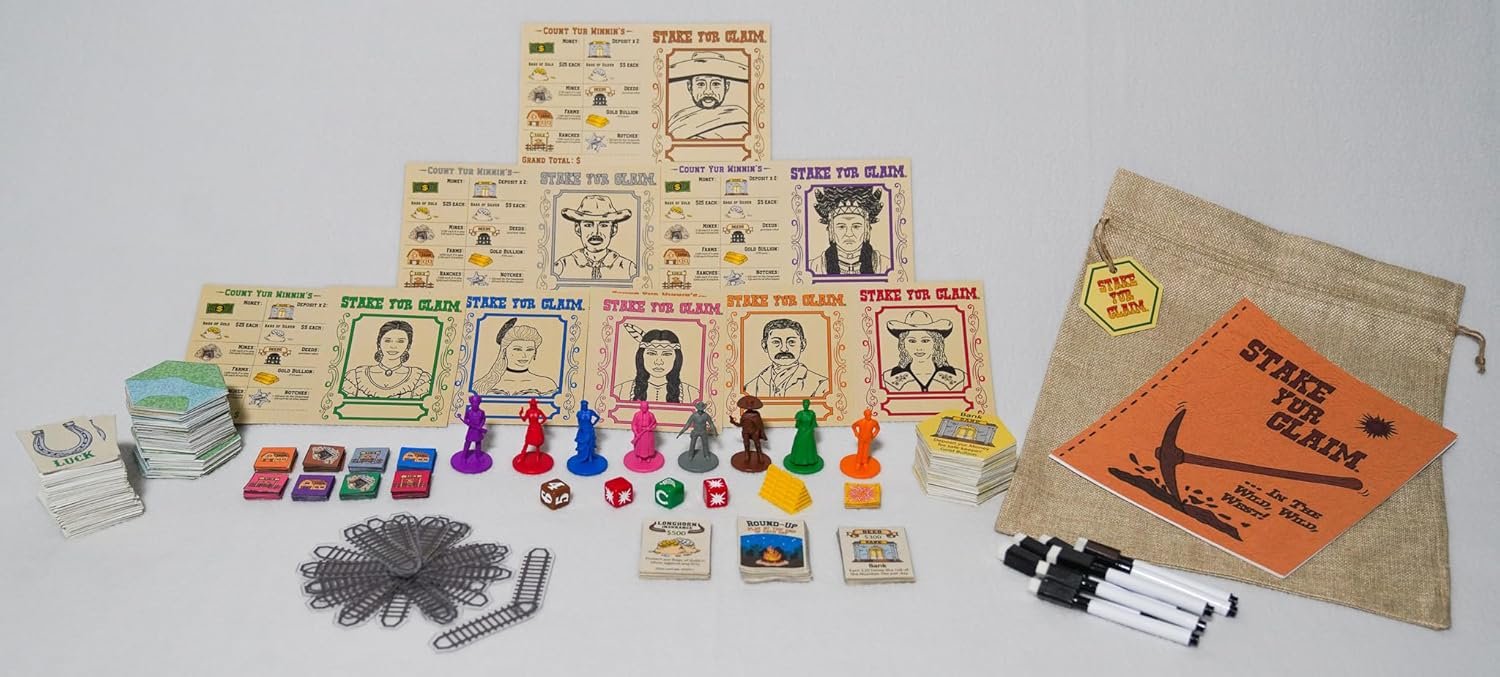 Stake Yur Claim is a Western Board Game, 3-8 Players, Wild West Strategy Game with Map Building and Multiple Victory Paths