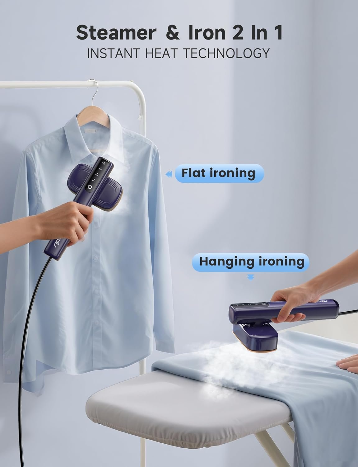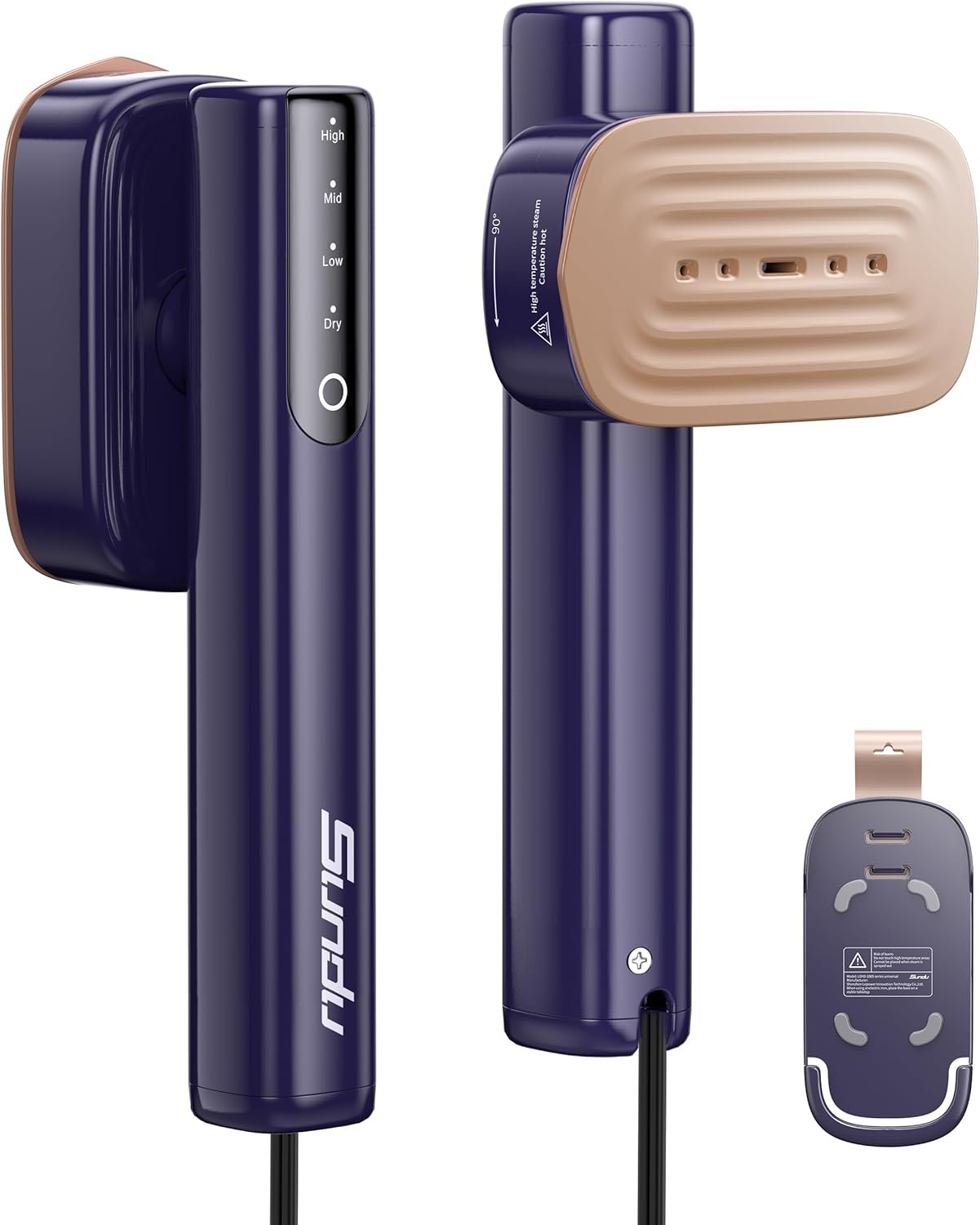 【2-in-1 Garment Steamer】The Sundu 2-in-1 Travel Steamer features an AI-powered temperature control system (320°F-356°F) and a ceramic soleplate. Its 90° rotating design enables both flat ironing and vertical steam pressing, supporting dry or wet ironing modes. Safely cares for all fabrics. The perfect all-in-one garment care solution.