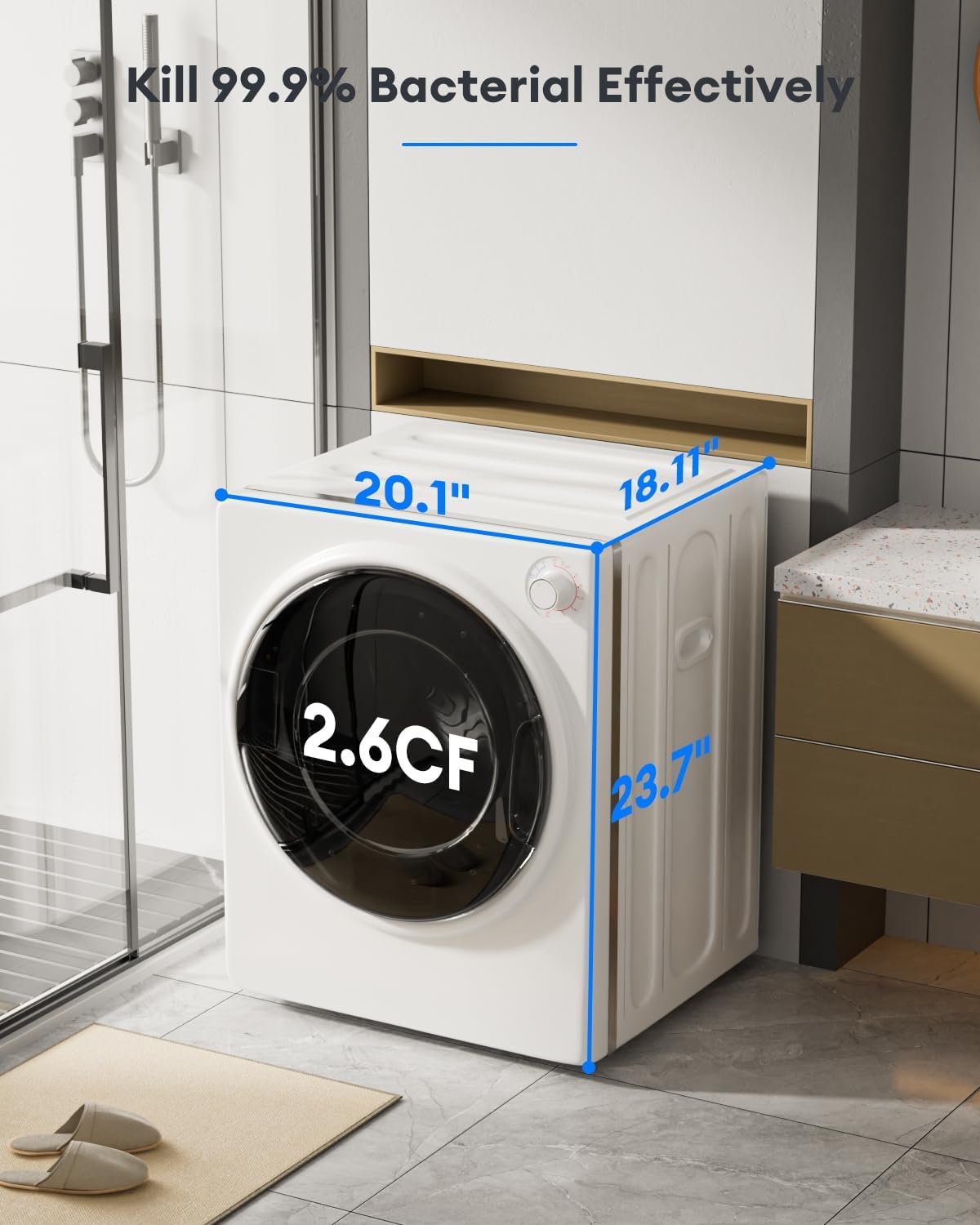 Dryer:【Powerful Performance】This electric dryer with 2.6 Cu Ft large capacity, this portable clothes dryer can ensure your clothes to be dry sooner. Even though it lasts rainy, you can still put on our beautiful dresses every day.