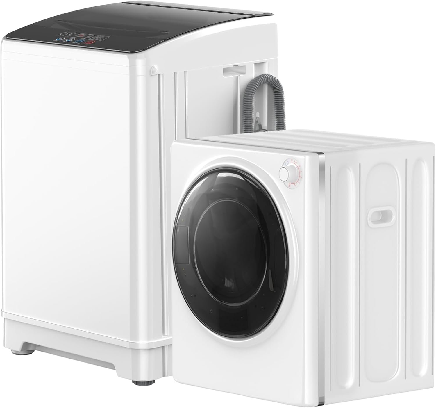 Washer:【Large Capacity & Compact Design】Equipped with a large stainless steel inner tub and powerful motor, our washing machine can accommodate 18lbs of clothes at one time for household use. Besides, the washer is suitable for washing and dehydration, which also can be used separately as needed.