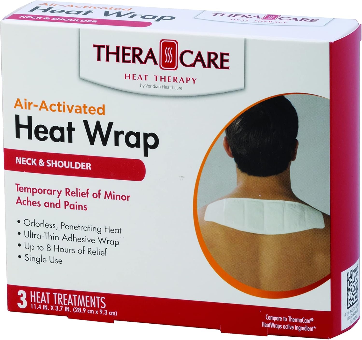 AIR-ACTIVATED HEAT WRAP — Containing 3 odorless, single use, air activated adhesive heat wraps. This heat wrap works by providing targeted heat therapy, effectively warming and relieving the pain where the wrap is applied.