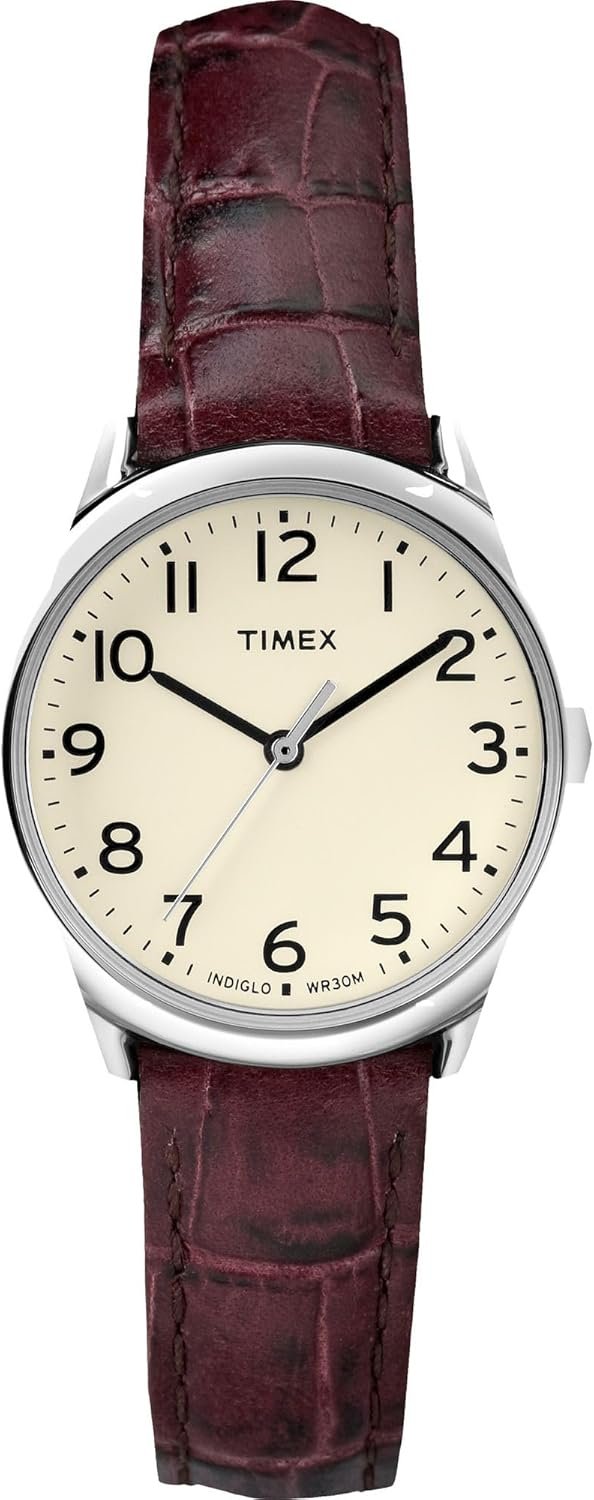 Customers find this watch to be a perfect everyday timepiece with a large face and numbers that are easy to read, even in the dark. They appreciate its simple style and consider it good value for money. The functionality and durability receive mixed reviews – while some say it holds up well with everyday wear, others report issues with the Indiglo feature stopping after two months and the leather band falling apart. The size also gets mixed feedback, with some finding it perfect for their wrist while others say the band is too big.