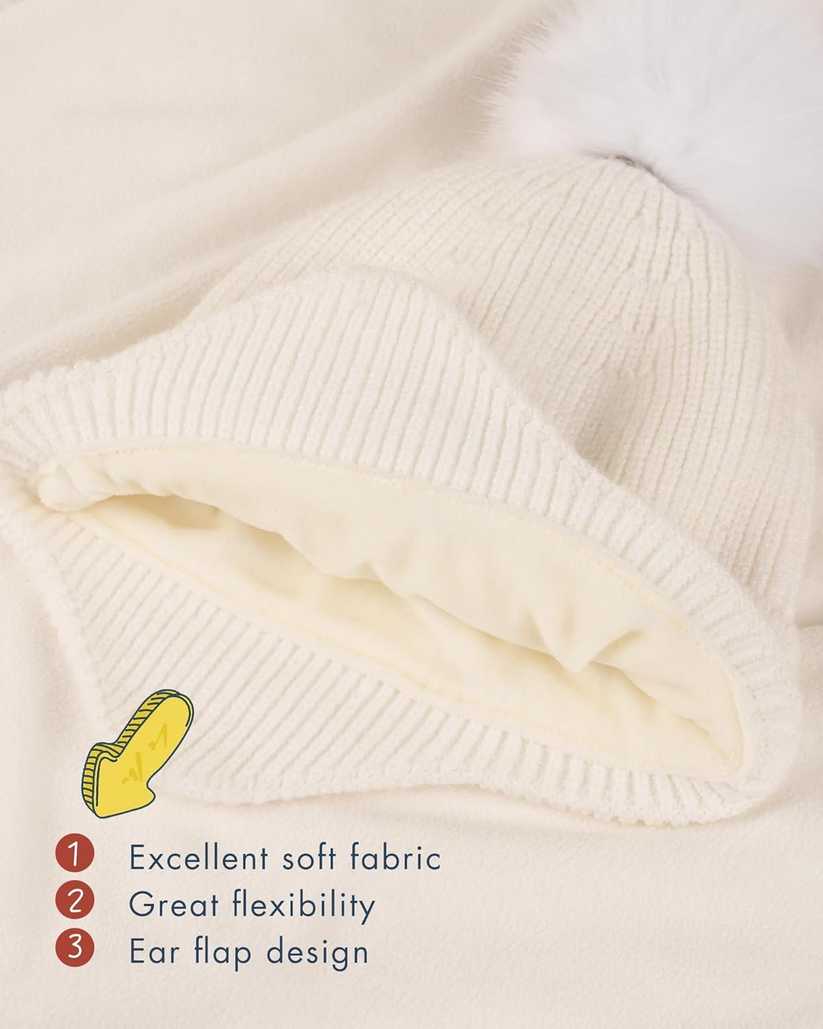 Customers find the winter hat keeps heads and ears warm, particularly for cold weather and outdoor walks, and appreciate its super soft interior and high-quality construction. Moreover, the hat fits well, with one customer noting it accommodates head sizes from 6 months to 2 years, while another mentions it’s roomy for growth. Additionally, the ear flaps provide excellent coverage, and the hat stays securely in place during outdoor play. Customers also like the cute design, with one highlighting the yellow color, and find it comfortable to wear.