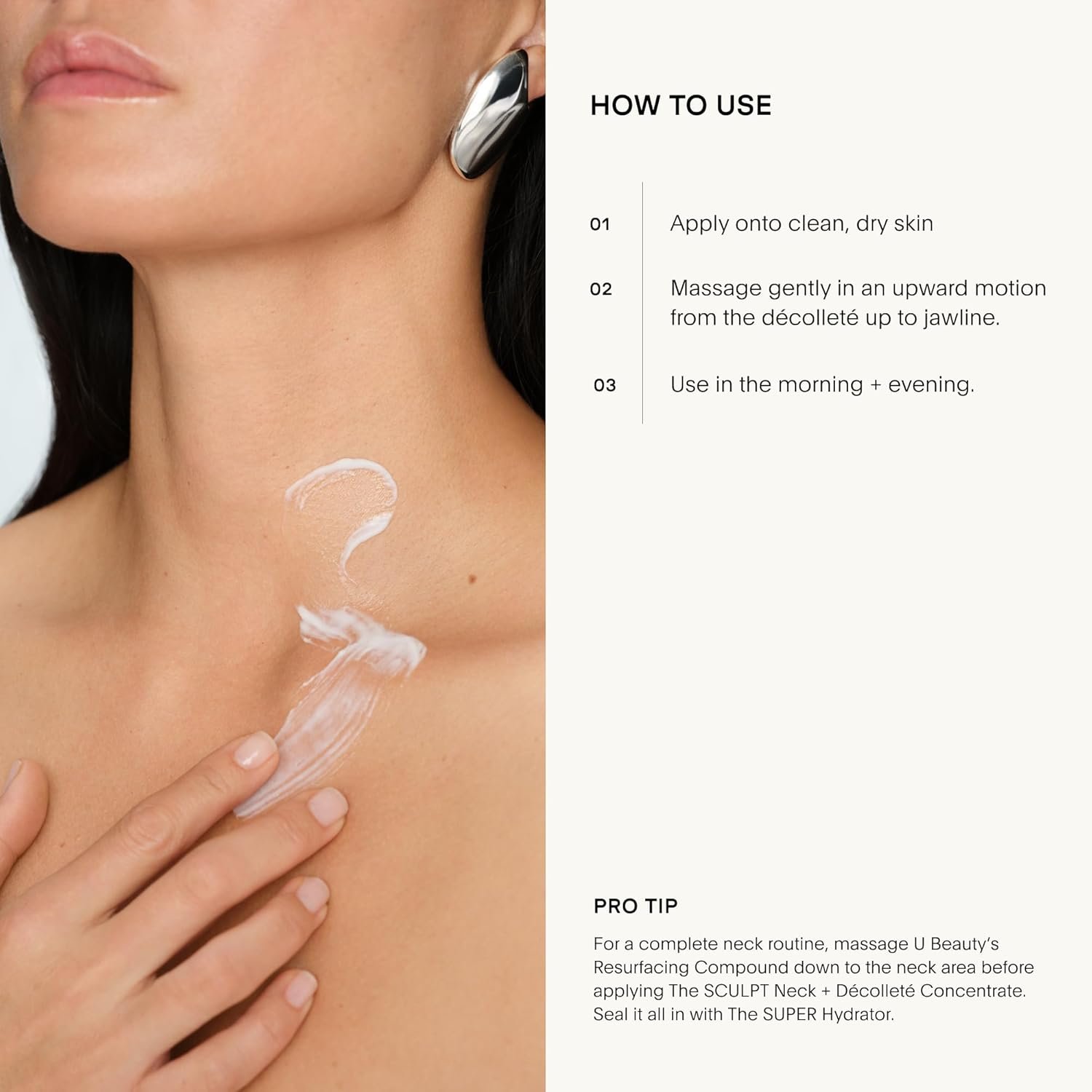 Visibly Lift and Contour Neck and Jawline: Apply this neck tightening cream morning and evening, massaging upward from the décolleté to the jawline, to quickly tighten the appearance of sagging skin, giving you a sleek, defined-looking profile.