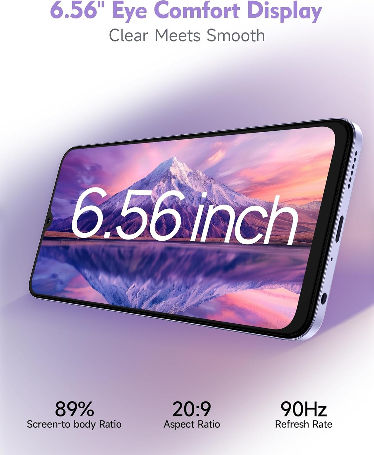 6.56-inch HD+ display with 90Hz refresh rate for smoother visuals and eye comfort, Note 21 unlocked phone canada boasts 1600×720 resolution and 450 nits brightness, 89% screen-to body ratio, 20:9 aspect ratio. The 2.5D curved glass display delivers a smooth and satisfying touch experience.