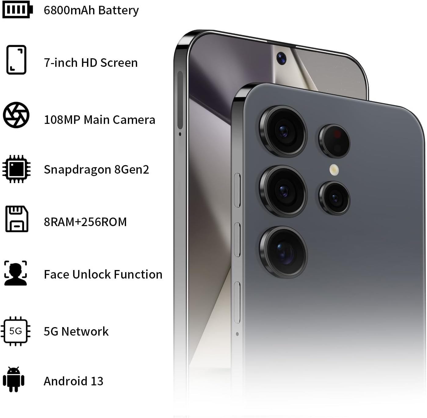 Unleash the power of technology and enjoy our S24 ultra unlocked phone! With a powerful 6800mAh battery, bid farewell to constant battery anxiety. Intelligent AI battery management further extends standby time, letting you use it worry-free.