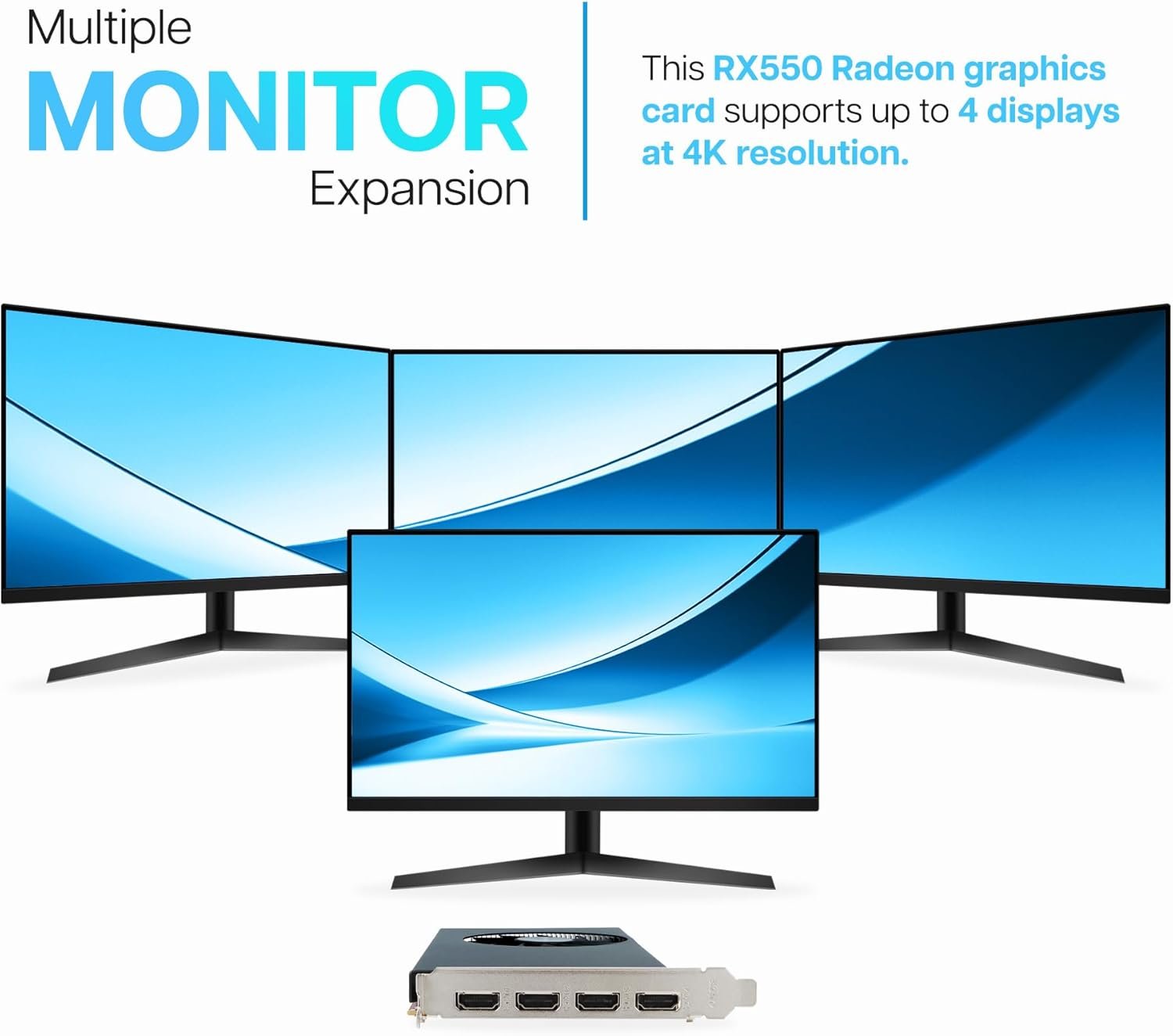 High-Resolution Display Support: Connect up to 4x 4K displays simultaneously with the VisionTek Radeon RX 550 4GB Graphics Card, delivering stunning 4K resolution at 60Hz on all monitors. Ideal for gaming PC setups, this graphics card for gaming PC ensures crisp visuals and smooth gameplay for a truly immersive experience.