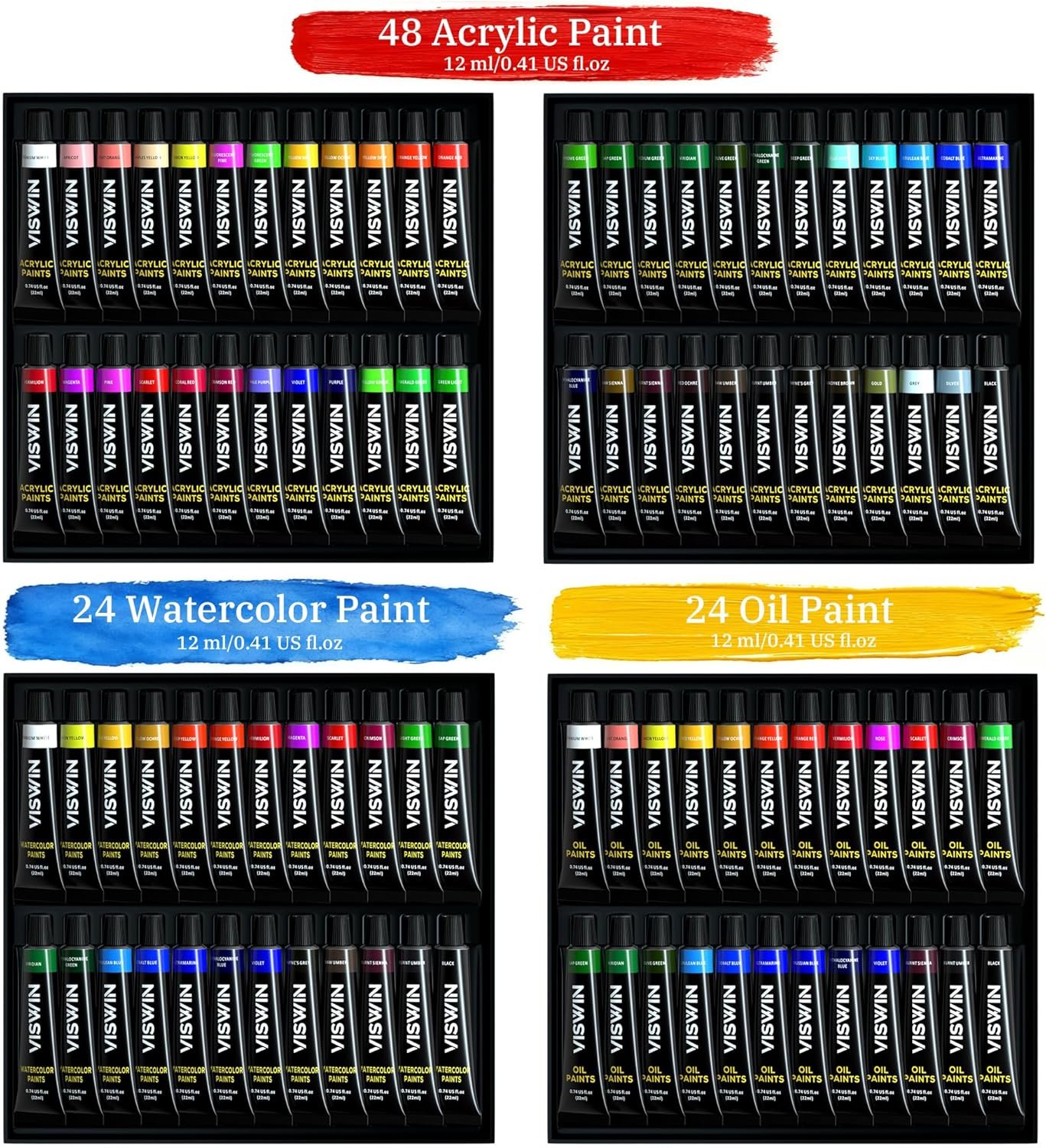 ALL-IN-ONE PROFESSIONAL PAINTING KIT: Our deluxe paint kit has everything you need: 2 premiun easels (Beechwood tabletop & Adjustable aluminum with bag), 96 artist-quality paint (48 Acrylics, 24 Oils, 24 Watercolors), 30 premium brushes , versatile surfaces (Canvas Panels, Stretched Canvases, 3 Paper Pads), comprehensive art supplies (Palette Knives, Wood & Plastic Palettes & More). Ideal for adults, beginners, students, and artists exploring multiple mediums.