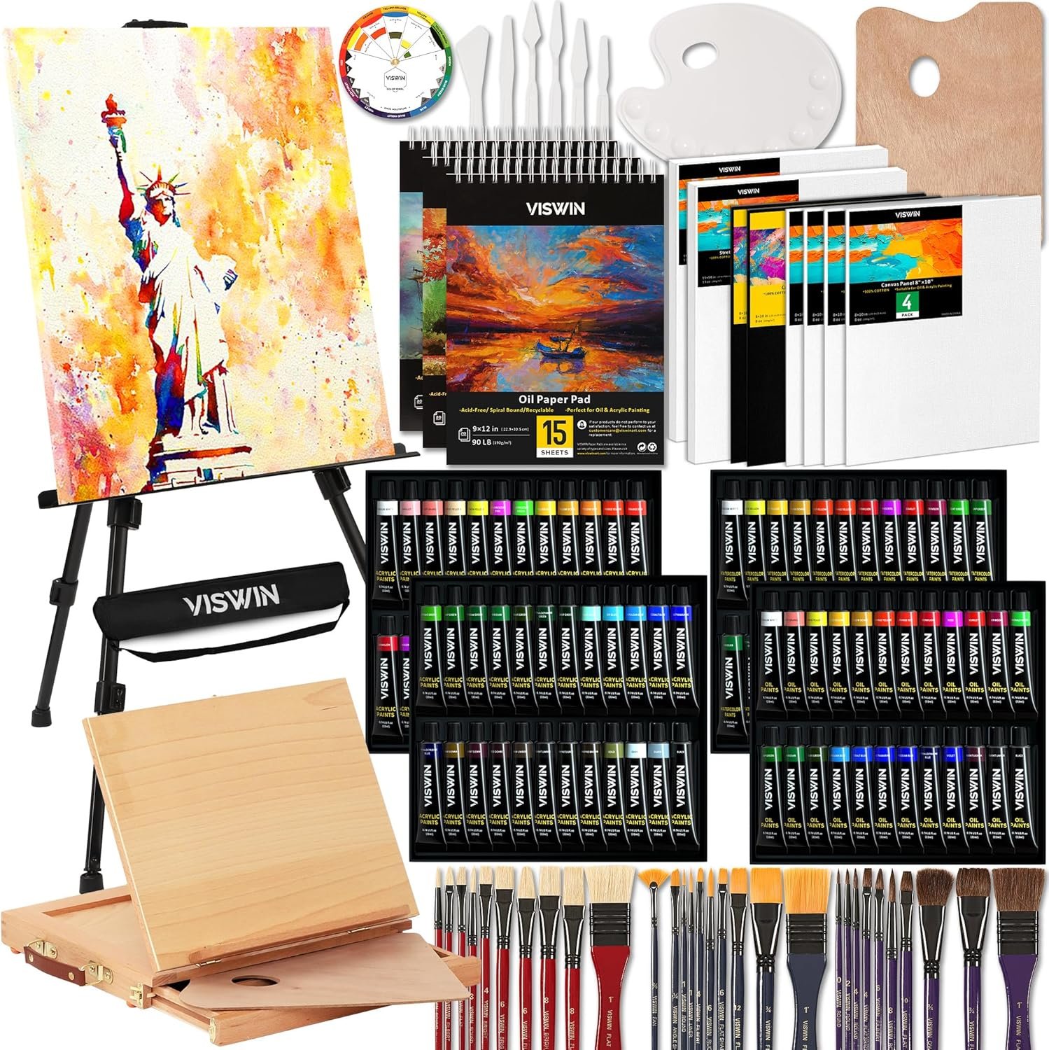 SAVE TIME & MONEY – All Supplies in One Box: No more hunting for separate supplies! This painting set offers a professional selection that covers acrylic, oil & watercolor needs in one set. From pro-quality paint set to durable easels, every piece is built to perform and last – delivering huge savings, ultimate convenience, and everything you need to create like a pro—right out of the box.
