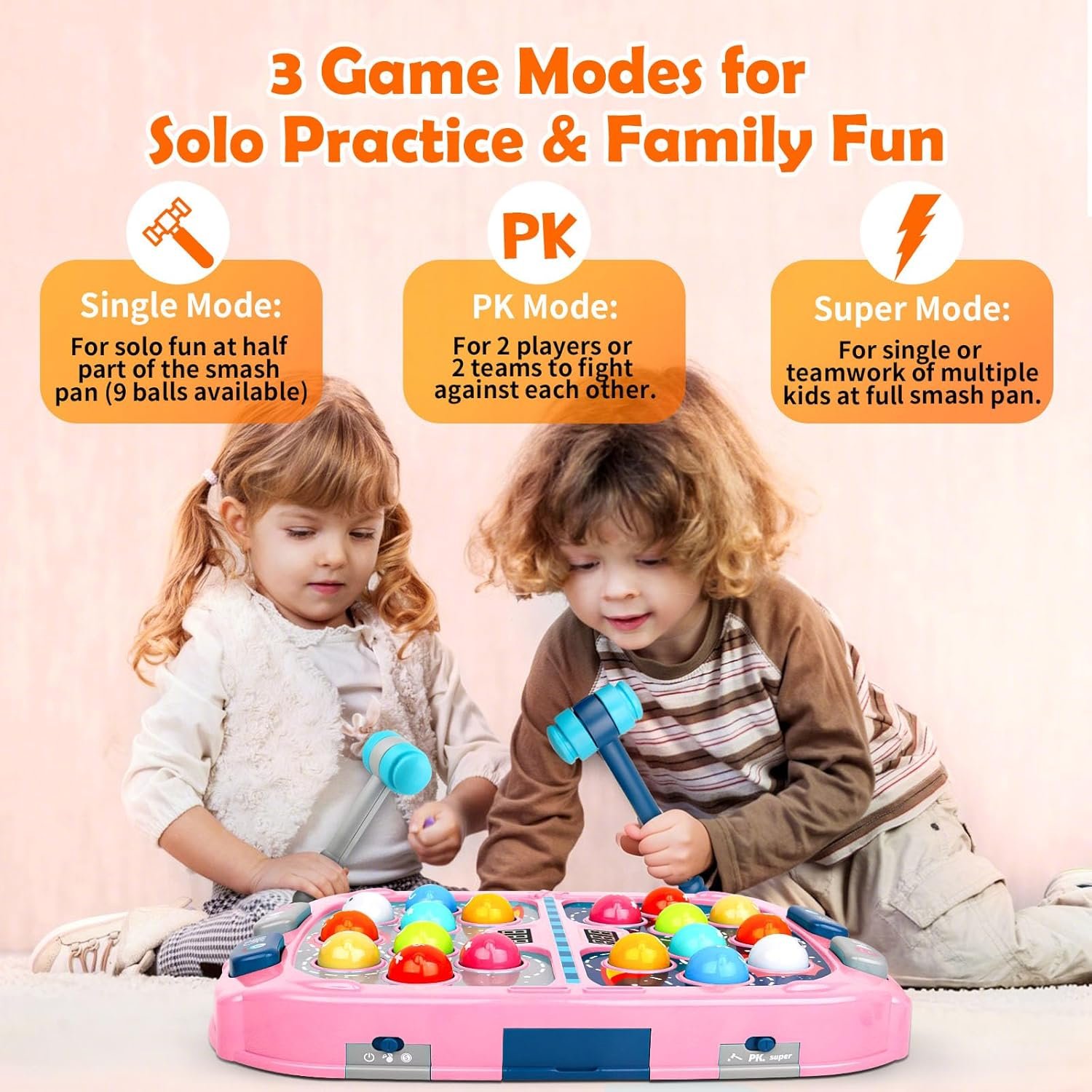 Developmental Fun & Friendly Competition: More than just thrills, it builds essential skills! Whacking targets hones fine motor skills, hand-eye coordination, brain development, cooperation, focus and reaction time.Designed for toys for ages 5-7 girls and boys, it encourages healthy competition with friends or parents using the two included soft-tip hammers.