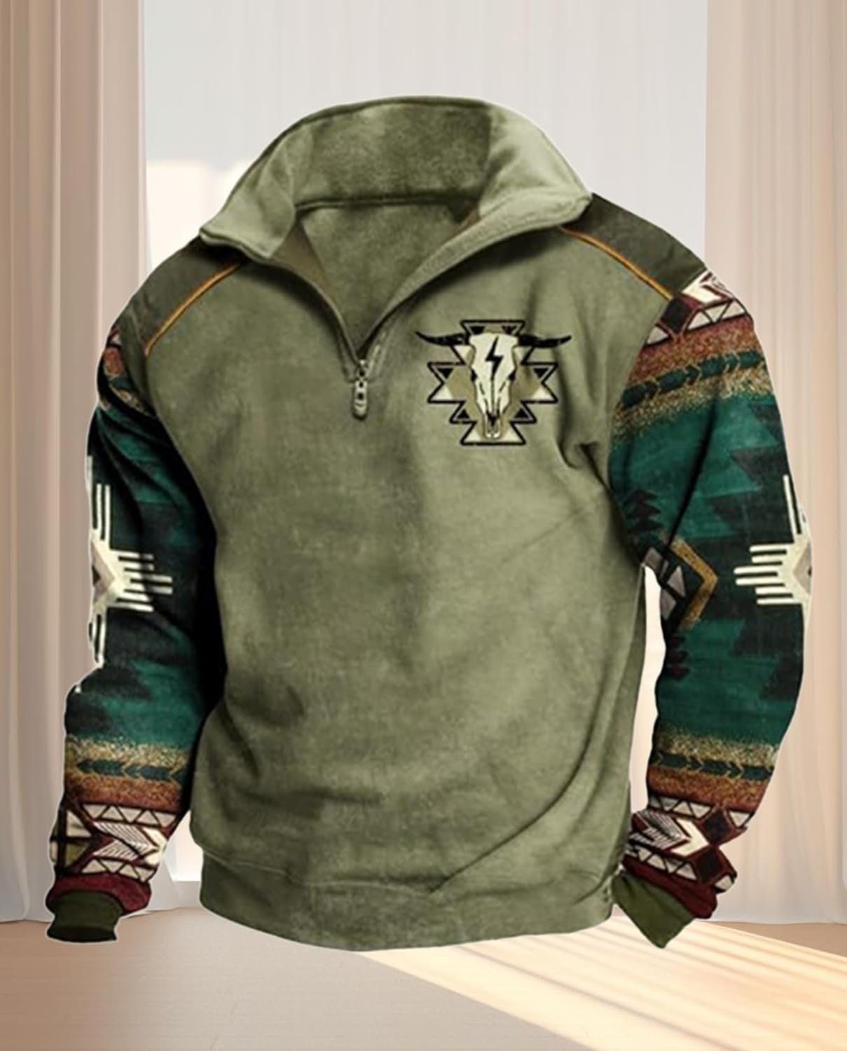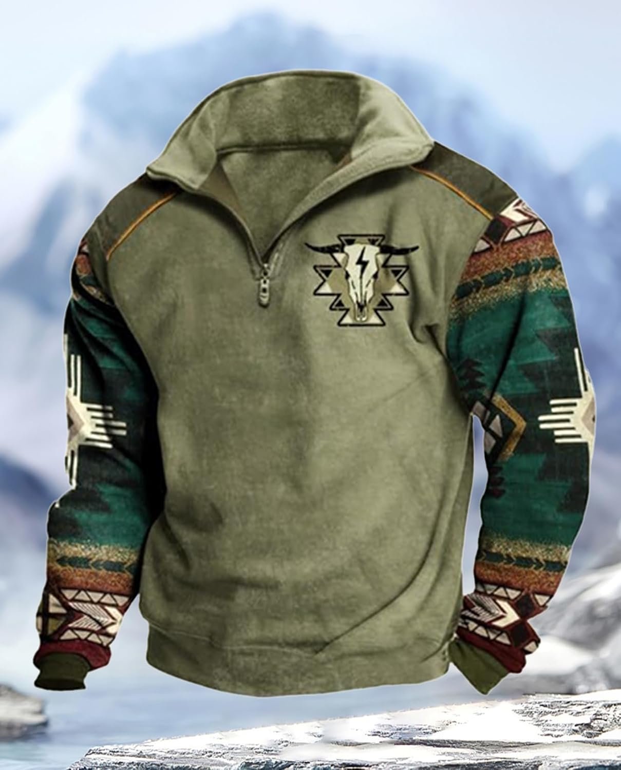 Western Sweatshirts for Men Aztec Ethnic Print Pullover Fleece Sweatshirts
