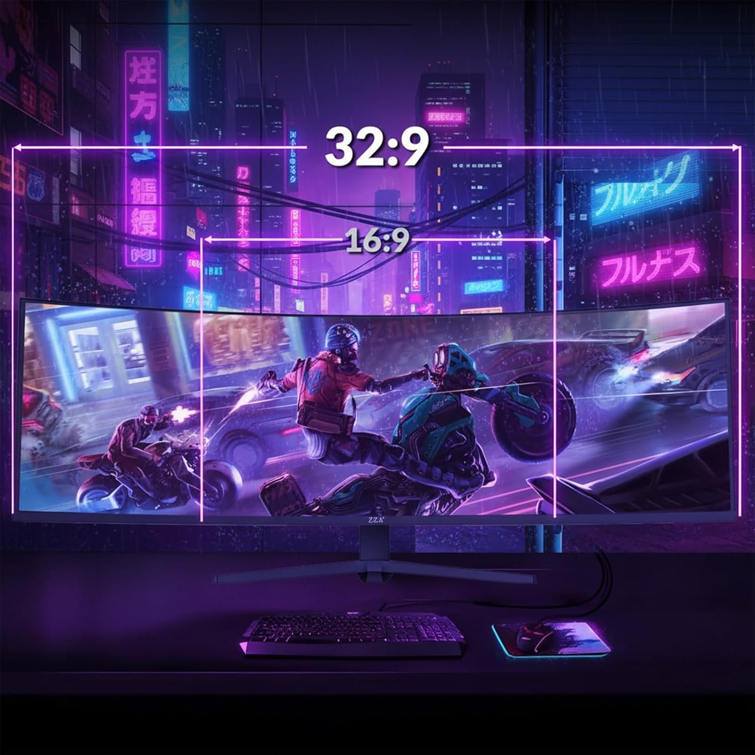 5120 x 1440 QHD resolution supports immersive experience for detailed images and video visual.