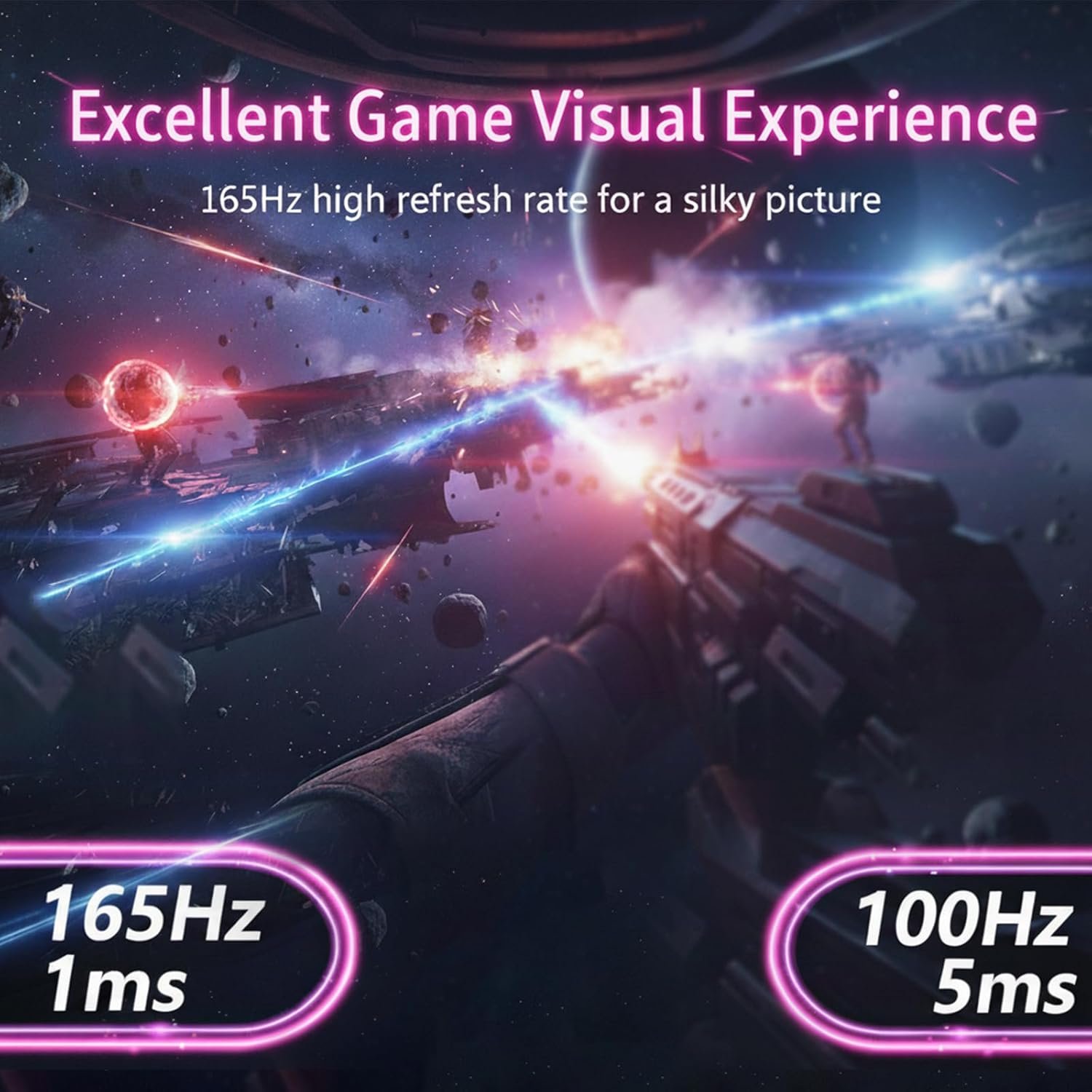 1.Ultra-Smooth 165Hz Refresh Rate with AMD FreeSync Premium: Immerse yourself in flawlessly smooth visuals powered by a 165Hz refresh rate. This monitor features AMD FreeSync Premium technology, which dynamically synchronizes the refresh rate with your GPU’s frame rate to eradicate screen tearing and significantly reduce stutter. The result is exceptionally responsive, fluid performance—whether you’re competing in esports, immersed in extended gaming sessions, streaming high-definition video, or handling daily computing tasks.
